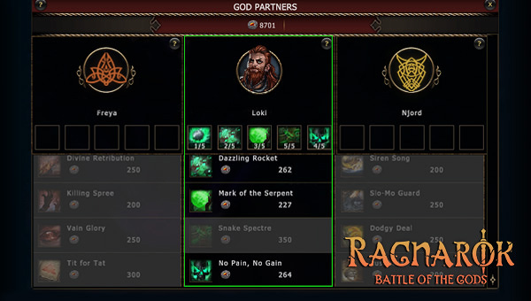 After entering the holy battlegrounds, the Norns will introduce you to the history of Ragnarök: Once you are up to speed, their servant Hulder will offer a choice between three god partners: Loki, Freya and Njord!